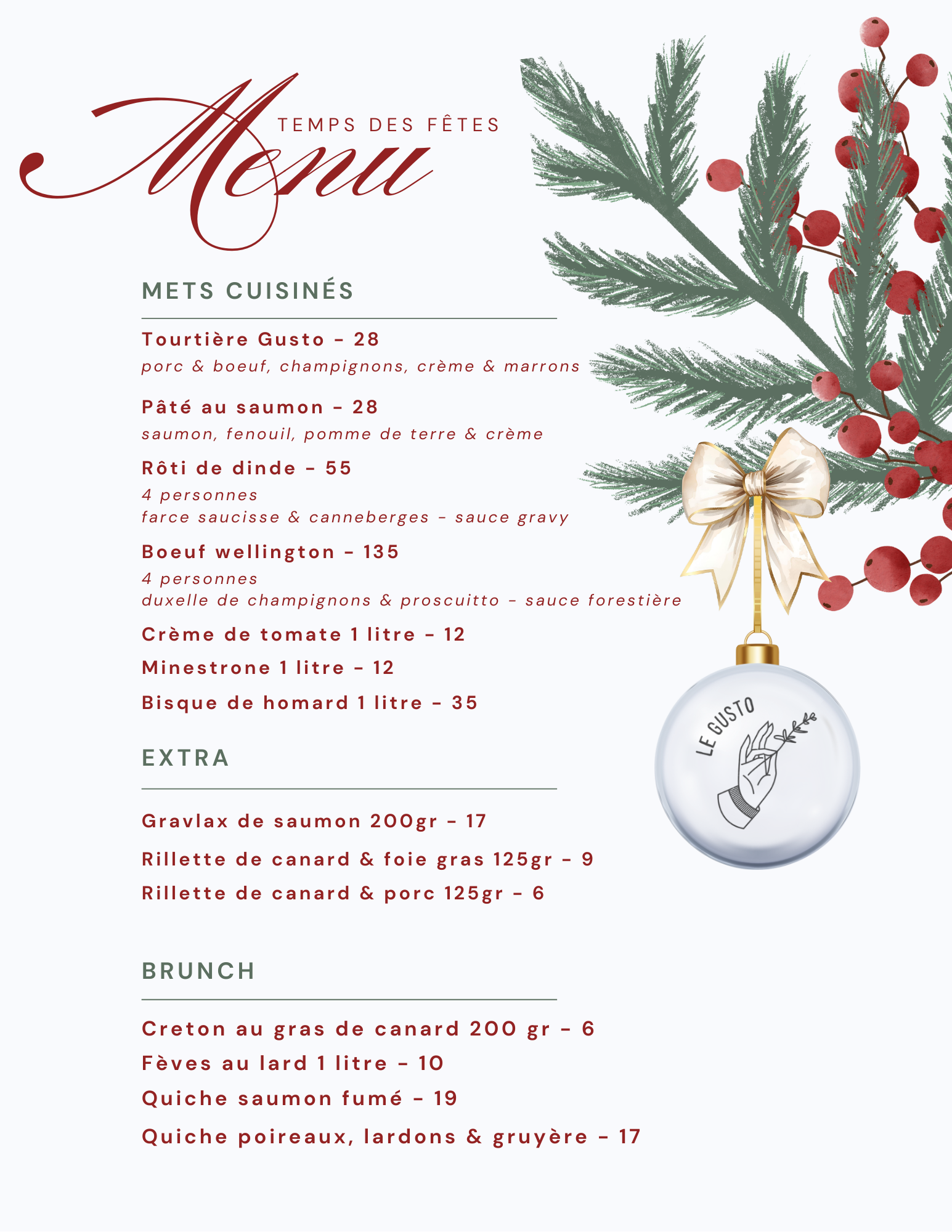 PRÉ-COMMANDE JUSQU'AU 10 DÉCEMBRE 2025 DU MENU TEMPS DES FÊTES
